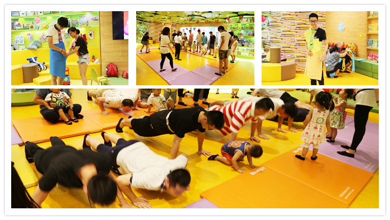 1、大力水手环节:宝贝们坐在芭比们的背上,妈咪们扶着,芭比们用标准的俯卧撑在最短的时间内做出最多的俯卧撑。