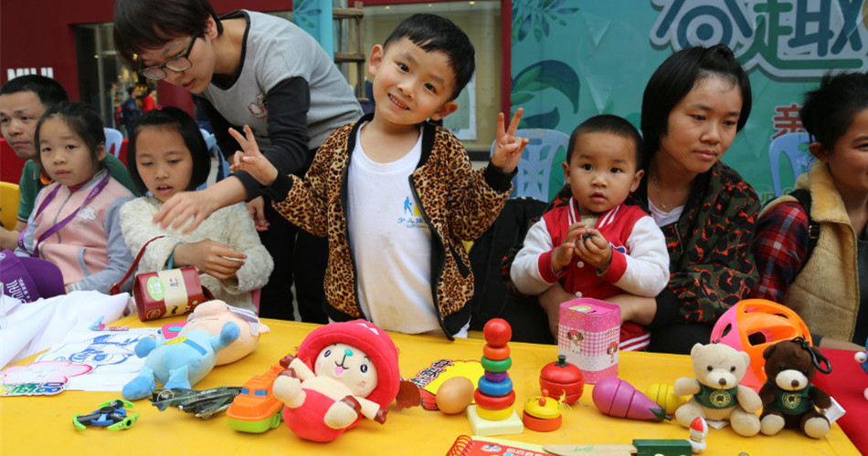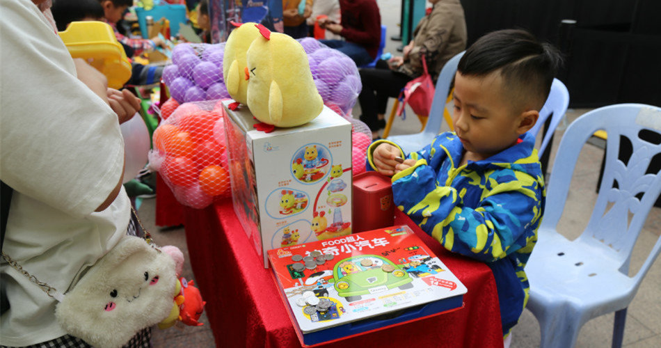 宝贝们主动出击,向全场小朋友介绍自己的商品。