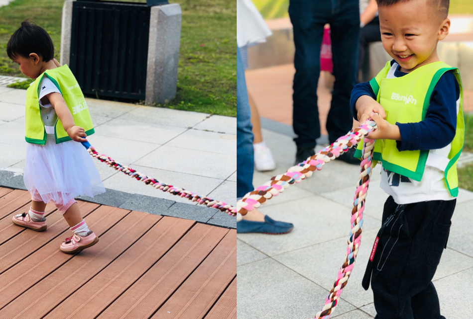 宝贝们变身小袋鼠,和爸爸妈妈一起接力传递快乐,在这过程中不仅增强宝贝们的腿部肌肉力量,充分感受到跳跃的乐趣,还加强了宝贝的团队协作意识。