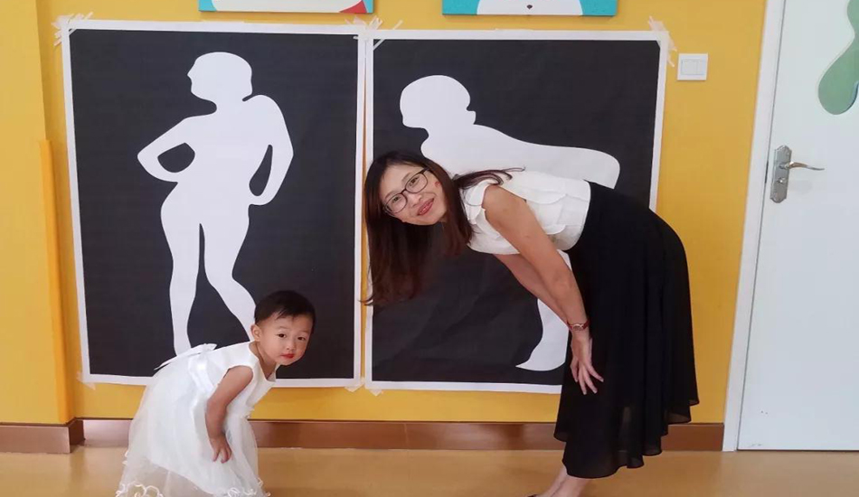 妈妈需要按照剪影摆出相应的姿势